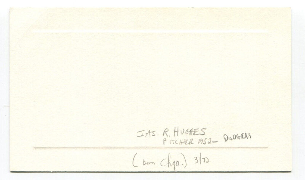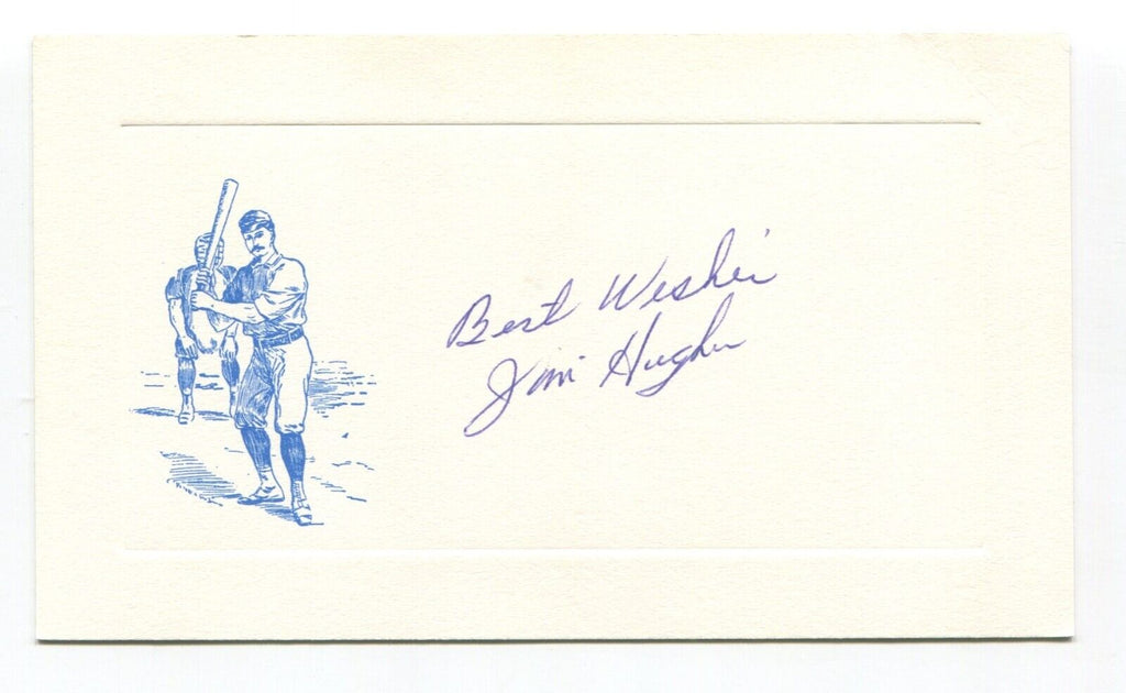 Up for sale is an autographed card approximately 3.5 x 5.5 inch card, boldly signed by baseball player Jim Hughes. Just a great looking autograph that will display nicely.   Autograph was acquired by renowned autograph collector Roger Harris.