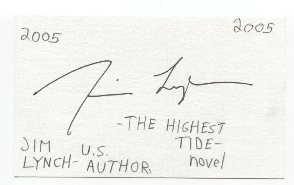 Up for sale is an autographed 3x5 index card, boldly signed by author Jim LynchThis autograph was part of an enormous collection of over 9000 in person collected signatures.