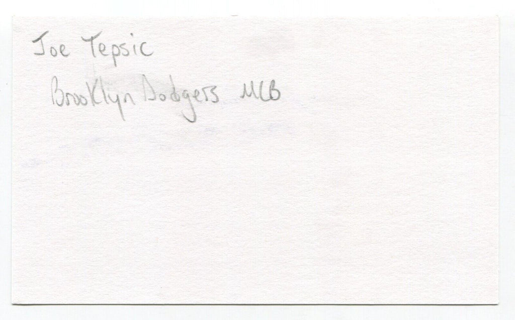 Joe Tepsic Signed 3x5 Index Card Autograph Baseball MLB 1946 Brooklyn Dodgers