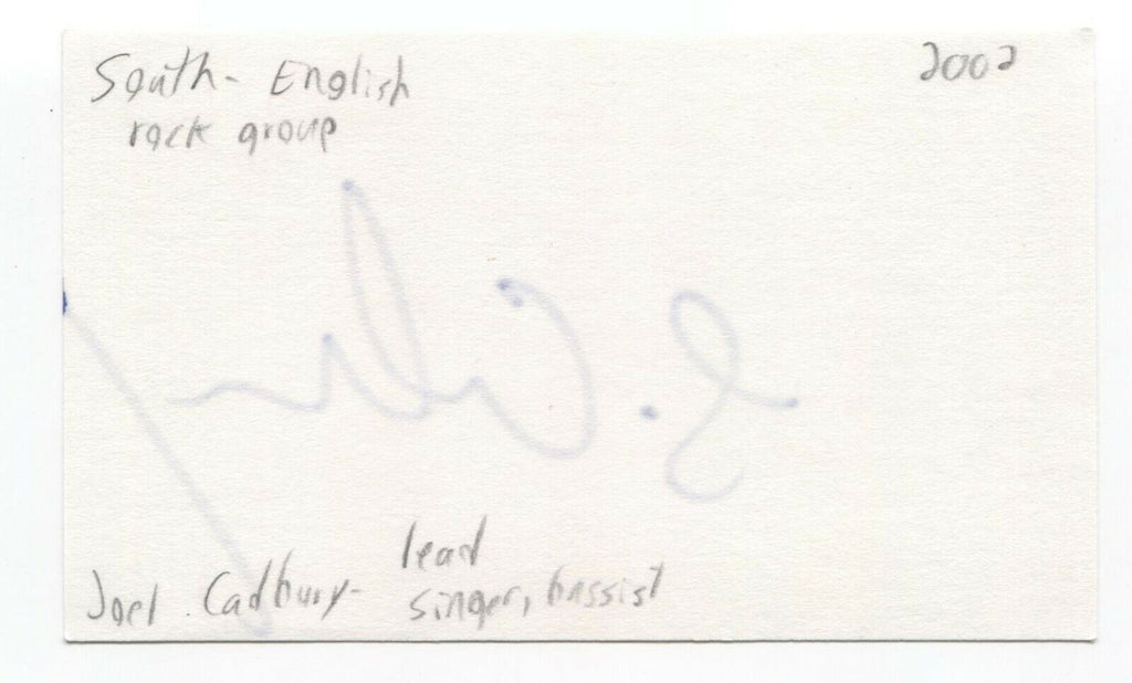 Joel Cadbury Signed 3x5 Index Card Autographed Signature Lead Singer of South