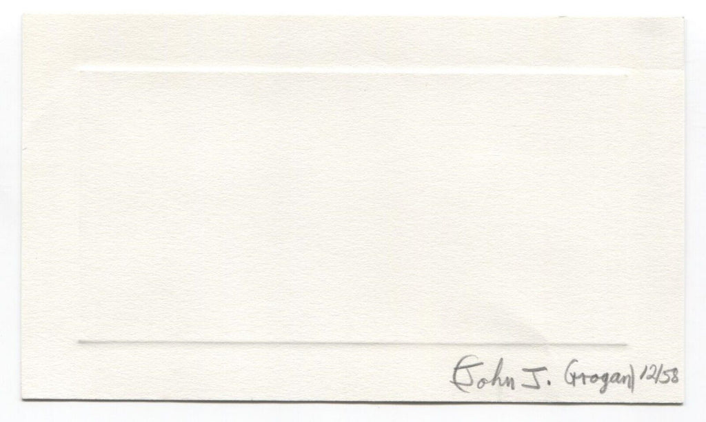 Up for sale is a signed card, boldly autographed by John J. Grogan. Autograph was part of the well known single owner, original "Roger Harris" collection of thousands of autographs, acquired over many decades of collecting.