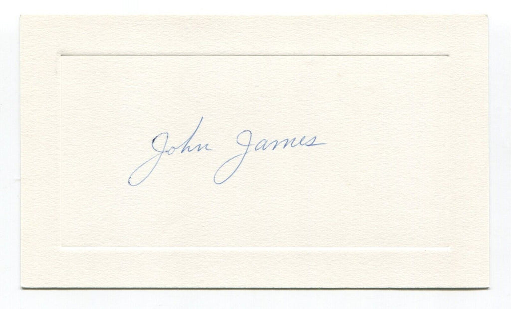 Up for sale is an autographed card approximately 3.5 x 5.5 inch card, boldly signed by baseball player John James. Just a great looking autograph that will display nicely. Autograph was acquired by renowned autograph collector Roger Harris.