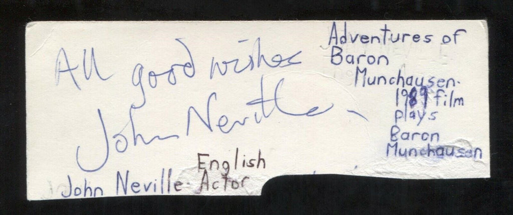 Up for sale is an autographed cut index card, boldly signed by actor John Neville. This autograph was part of an enormous collection of over 9000 in person collected signatures.