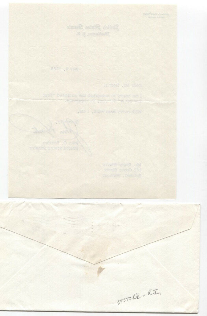 John Pastore Signed Letter TLS Autographed Signature Senator Governor