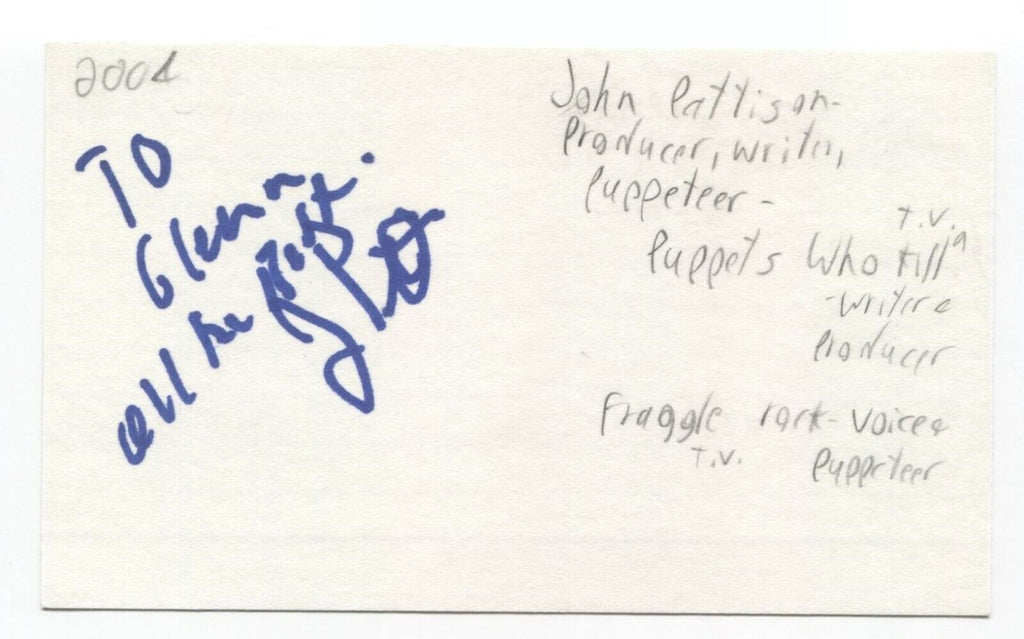 Up for sale is an autographed index card, boldly signed by producer John Pattison.  This autograph was part of an enormous collection of over 9000 in person collected signatures.