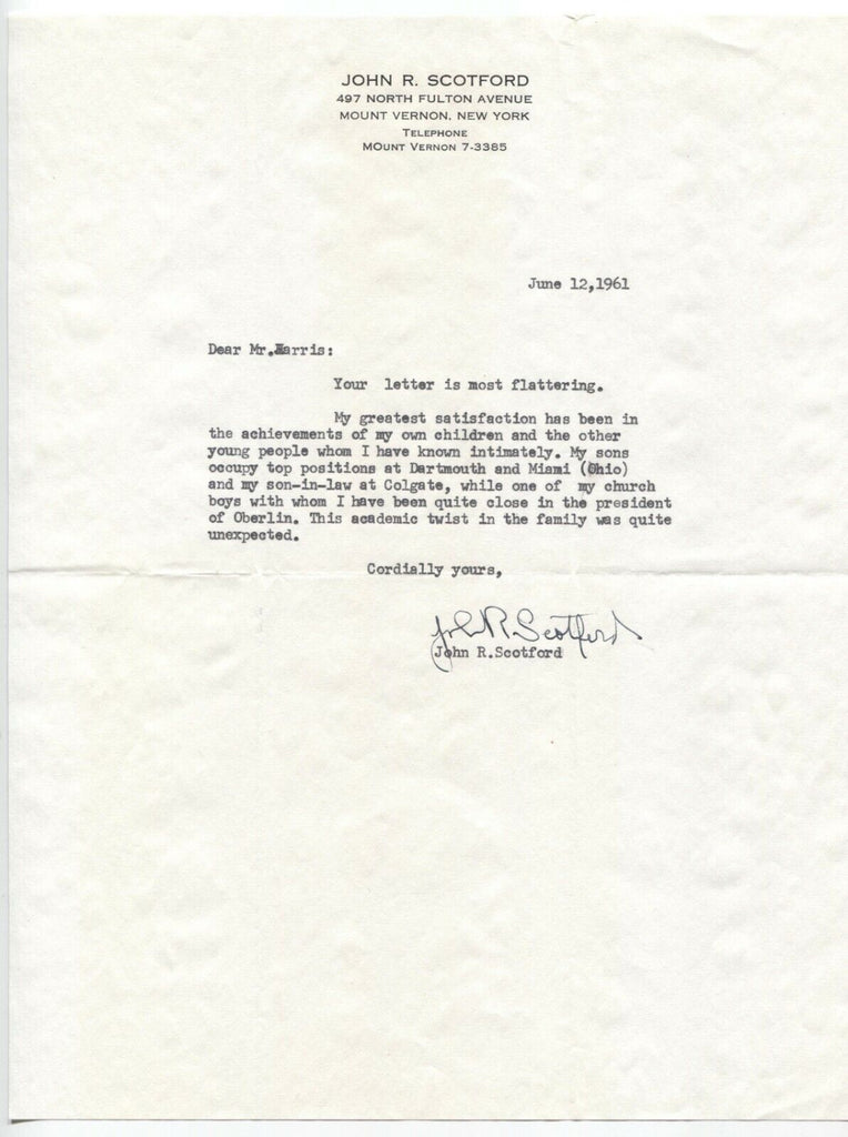 John R. Scotford Signed Handwritten Letter Autographed Clergyman Author