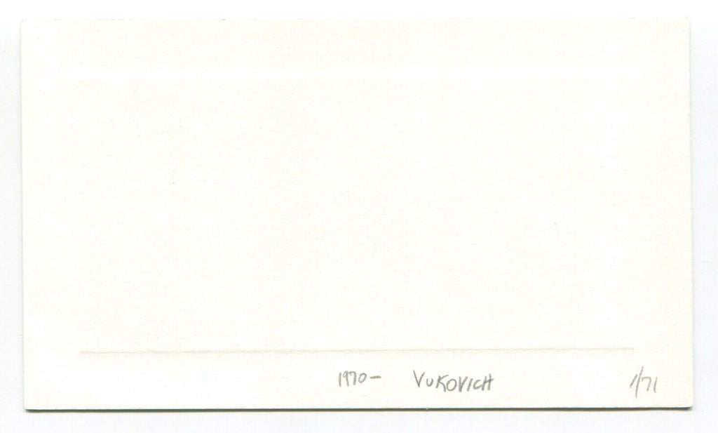Up for sale is an autographed approximately 3.5 x 5.5 inch card, boldly signed by baseball player John Vukovich. Just a great looking autograph that will display nicely. Autograph was acquired by renowned autograph collector Roger Harris.