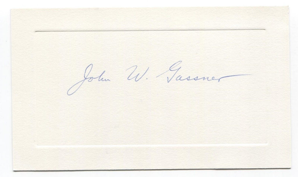 Up for sale is a signed card, boldly autographed by John W. Gassner. Autograph was part of the well known single owner, original "Roger Harris" collection of thousands of autographs, acquired over many decades of collecting.