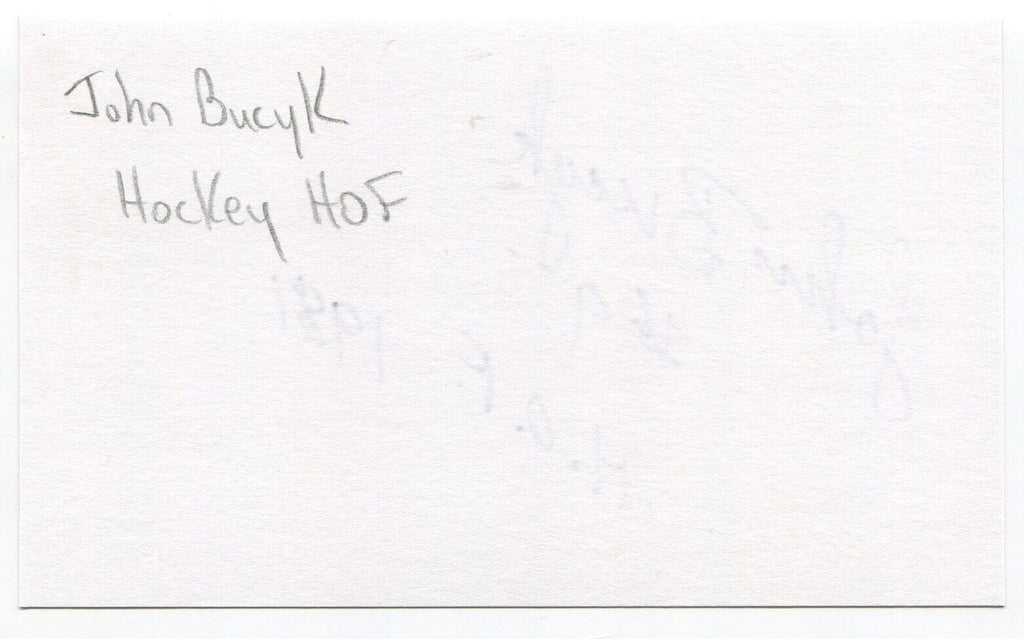 Johnny Bucyk Signed 3x5 Index Card Autographed NHL Hockey Pittsburgh HOF