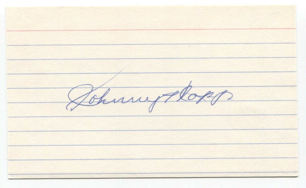 Up for sale is an autographed 3x5 index card, boldly signed by Johnny Hopp. Just a great looking autograph that will display nicely. Autograph was part of a large collection of over 325 baseball signatures that I was fortunate to purchase in it's entirety.