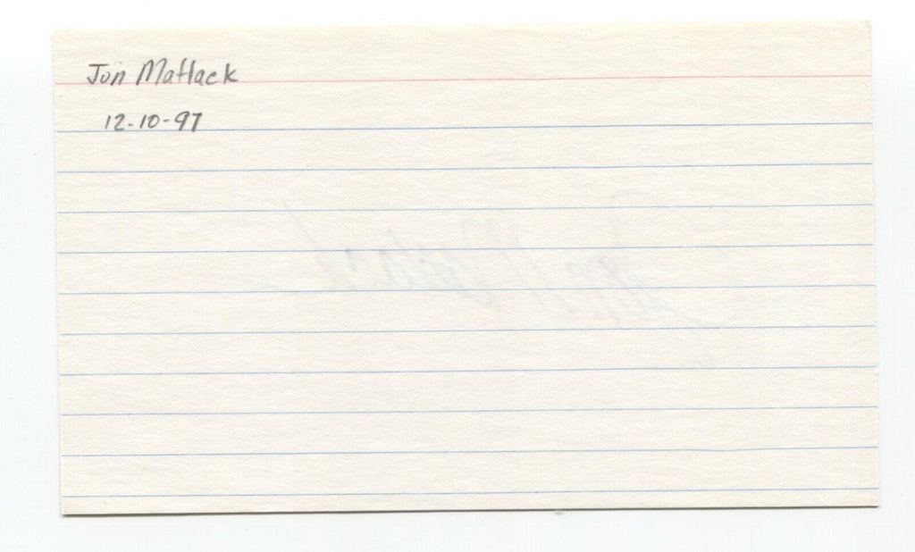 Up for sale is an autographed 3x5 index card, boldly signed by Jon Matlack. Just a great looking autograph that will display nicely. Autograph was part of a large collection of over 325 baseball signatures that I was fortunate to purchase in it's entirety.