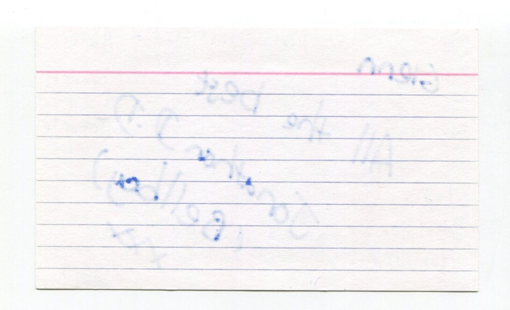Up for sale is an autographed 3x5 index card, boldly signed by actor Jonathan Dudley.  This autograph was part of an enormous collection of over 9000 in person collected signatures, all acquired in person by the great Glenn Marshall.