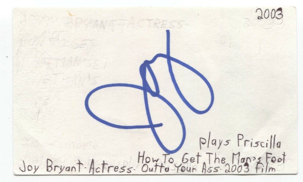 Up for sale is an autographed 3x5 index card, boldly signed by Joy Bryant.  Autograph was part of an enormous collection of over 9000 in person collected signatures.