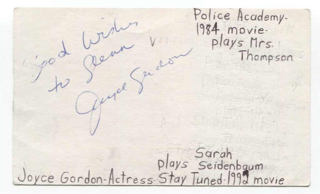 Joyce Gordon Signed 3x5 Index Card Autographed Signature Actress Police Academy