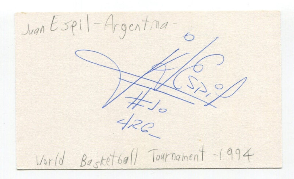 Juan Alberto Espil Signed 3x5 Index Card Autographed Basketball Argentina