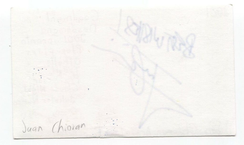 Up for sale is an autographed 3x5 index card, boldly signed by Juan Chioran.  Autograph was part of an enormous collection of over 9000 in person collected signatures.