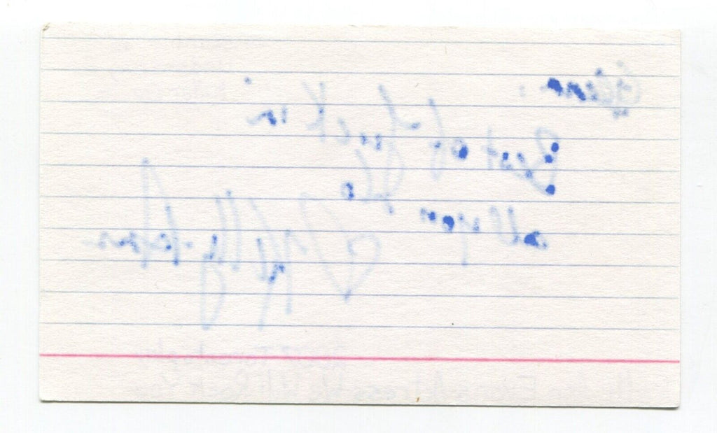 Up for sale is an autographed 3x5 index card, boldly signed by actress Kelly Ann Evans. This autograph was part of an enormous collection of over 9000 in person collected signatures, all acquired in person by the great Glenn Marshall.