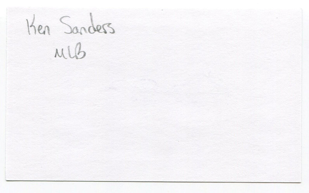 Up for sale is an autographed 3x5 index card, boldly signed by baseball player Ken Sanders. Just a great looking autograph that will display nicely. Autograph was part of a huge "MP" Collection, consisting of over 3,000 signed index cards that I was fortunate to purchase in it's entirety.
