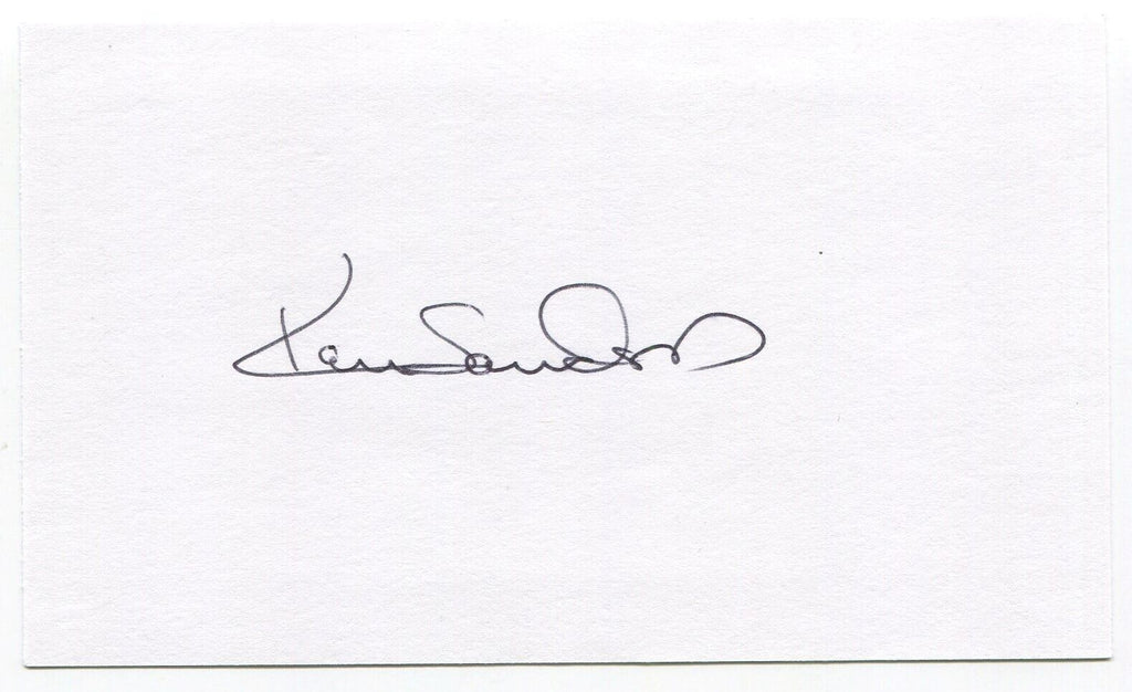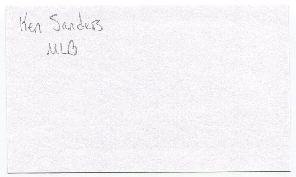 Up for sale is an autographed 3x5 index card, boldly signed by baseball player Ken Sanders. Just a great looking autograph that will display nicely. Autograph was part of a huge "MP" Collection, consisting of over 3,000 signed index cards that I was fortunate to purchase in it's entirety.
