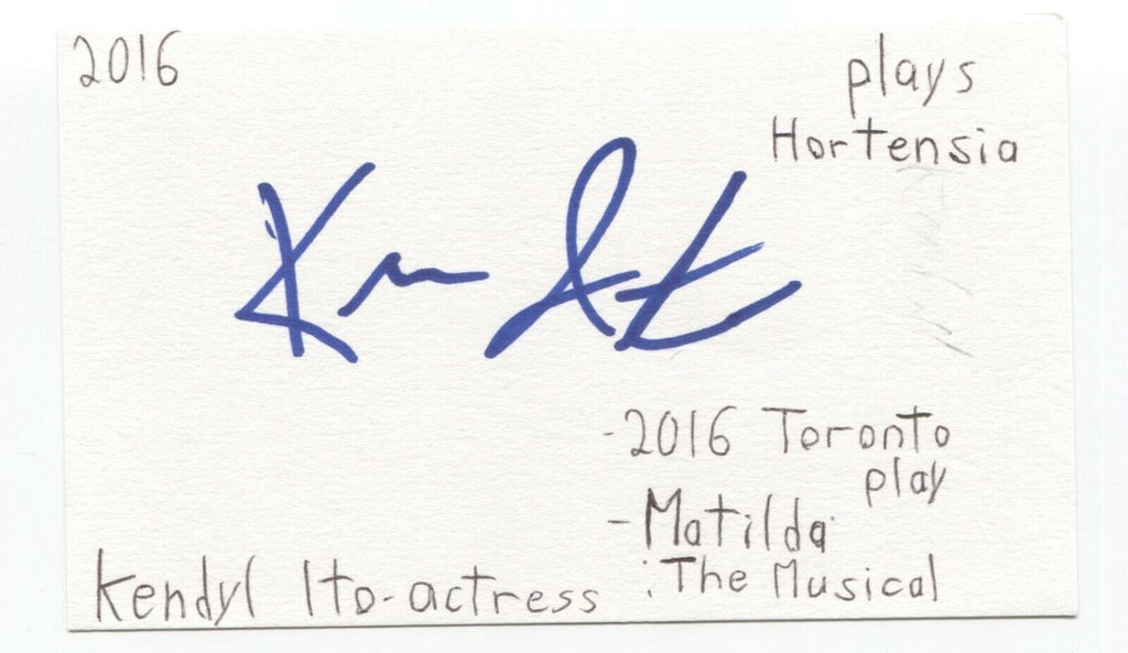 Kendyl Ito Signed 3x5 Index Card Autographed Signature Theatre Actress
