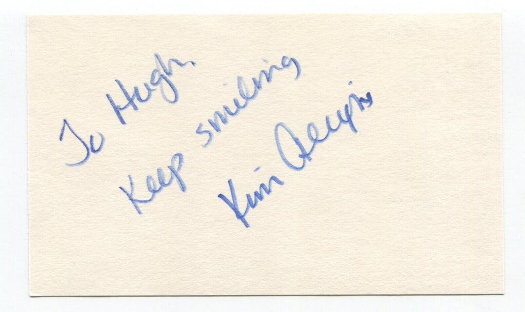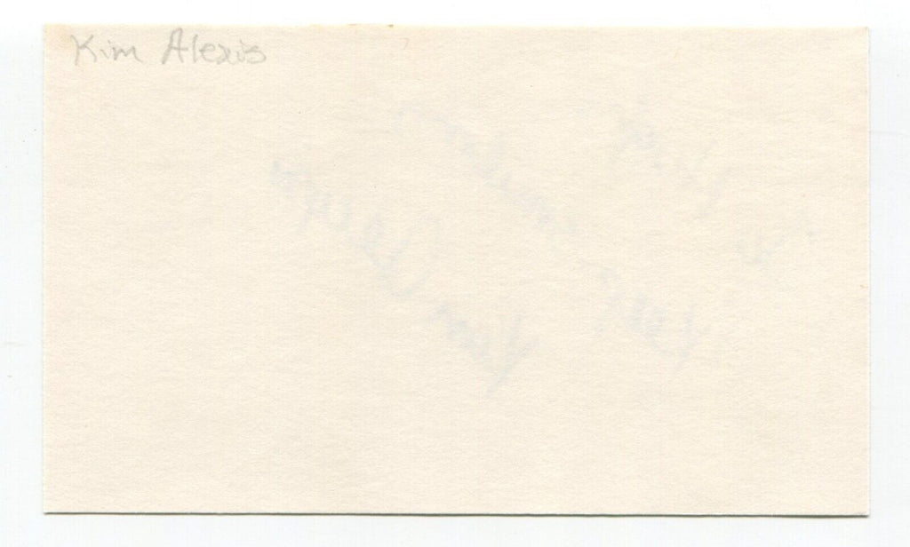 Up for sale is an autographed 3x5 index card, boldly signed by actress Kim Alexis. Just a great looking autograph that will display nicely. Autograph was part of over 120 signed index cards mostly obtained in the 1980's and 1990's.