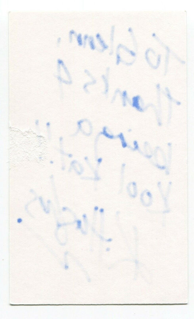 Up for sale is an autographed 3x5 index card, boldly signed by journalist Kim Hughes. Autograph was part of an enormous collection of over 9000 in person collected signatures that I was fortunate to purchase in it's entirety.