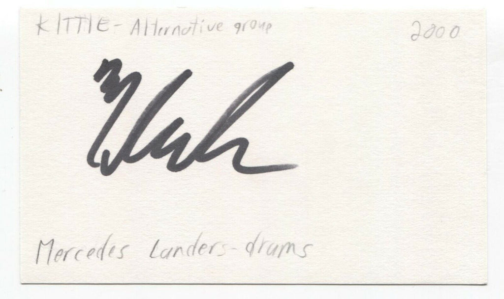 Up for sale is an autographed 3x5 index card, boldly signed by Mercedes Lander, of the band Kittie. This autograph was part of an enormous collection of over 9000 in person collected signatures.