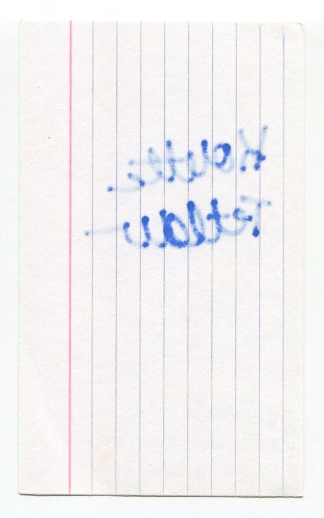 Up for sale is an autographed 3x5 index card, boldly signed by actress Kolette Tetlow.  This autograph was part of an enormous collection of over 9000 in person collected signatures, all acquired in person by the great Glenn Marshall.