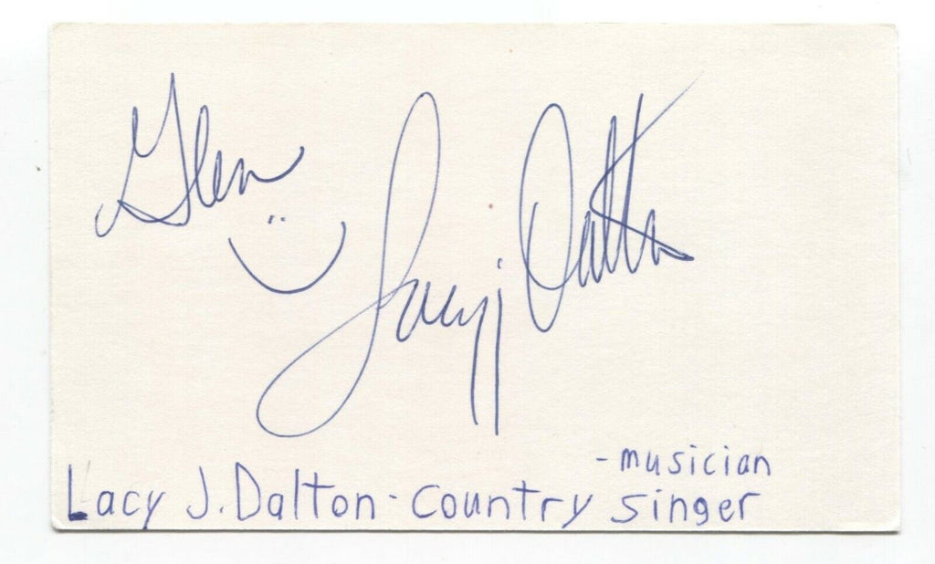 Up for sale is an autographed 3x5 index card, boldly signed by Lacy J. Dalton. This autograph was part of an enormous collection of over 9000 in person collected signatures.
