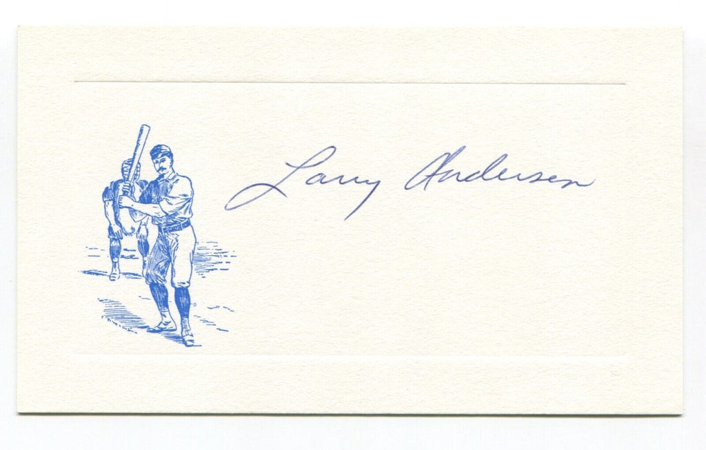 Up for sale is an autographed approximately 3.5 x 5.5 inch card, boldly signed by baseball player Larry Anderson. Just a great looking autograph that will display nicely. Autograph was acquired by renowned autograph collector Roger Harris.
