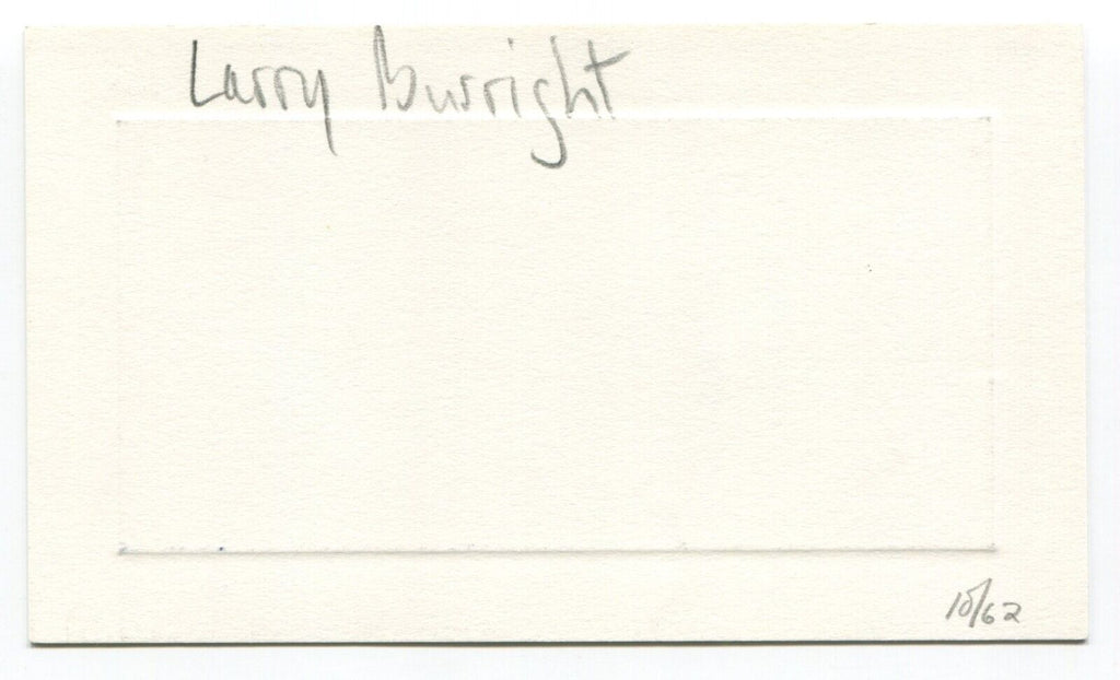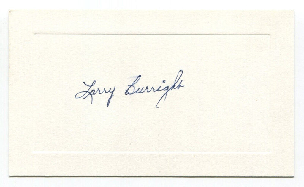 Up for sale is an autographed approximately 3.5 x 5.5 inch card, boldly signed by baseball player Larry Burright. Just a great looking autograph that will display nicely. Autograph was acquired by renowned autograph collector Roger Harris.