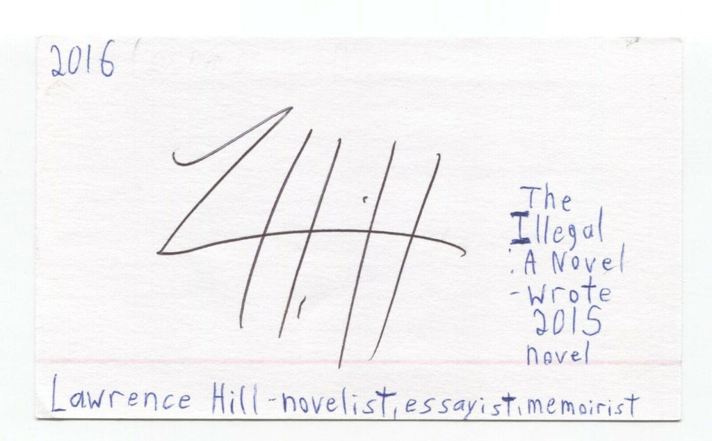 Up for sale is an autographed 3x5 index card, boldly signed by author Lawrence Hill. This autograph was part of an enormous collection of over 9000 in person collected signatures.
