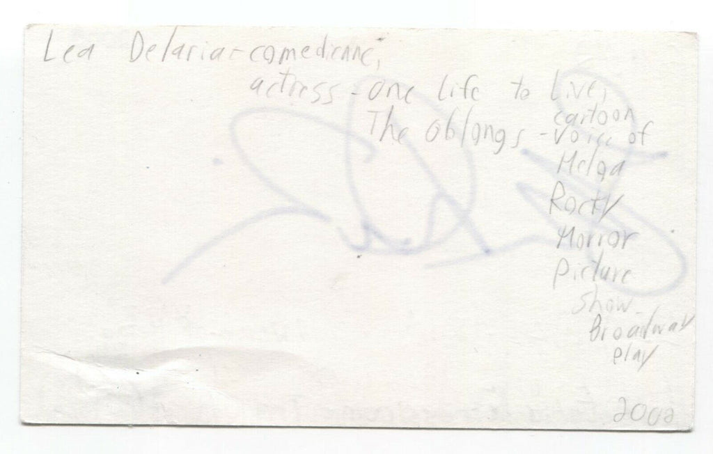 Up for sale is an autographed 3x5 index card, boldly signed by actress Lea DeLaria. This autograph was part of an enormous collection of over 9000 in person collected signatures.