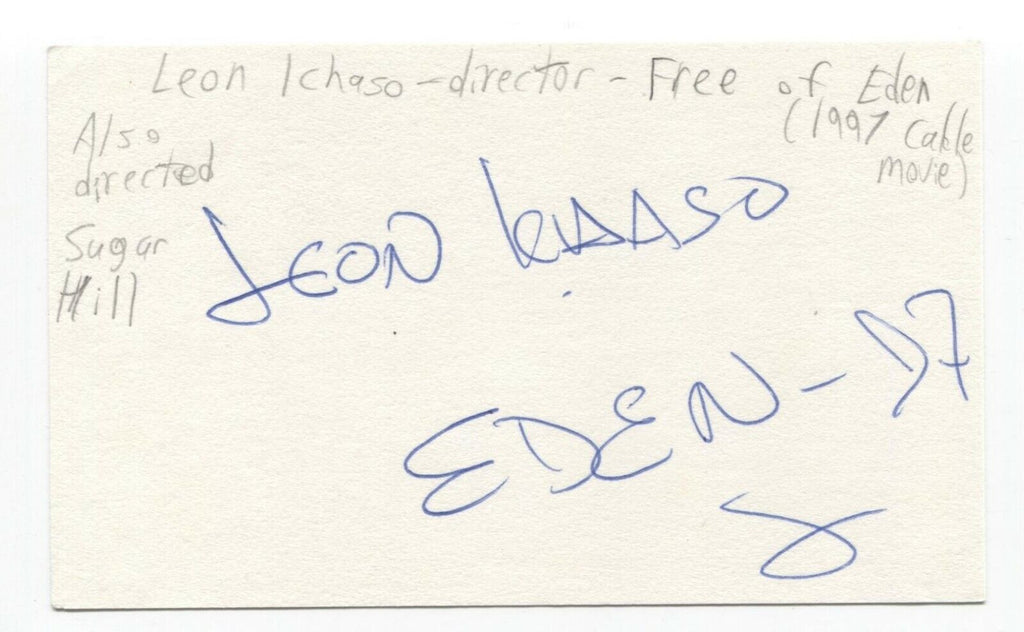 Up for sale is an autographed 3x5 index card, boldly signed by Leon Ichaso. Autograph was part of an enormous collection of over 9000 in person collected signatures.