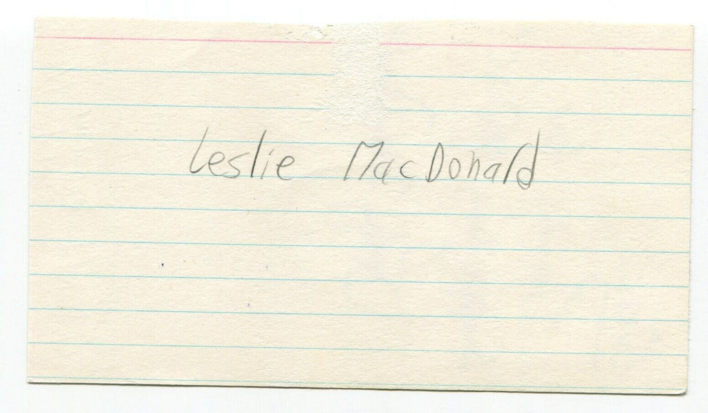 Up for sale is an autographed 3x5 index card, boldly signed by Canadian journalist Lesley MacDonald. Autograph was part of an enormous collection of over 9000 in person collected signatures, all acquired by the great Glenn Marshall.