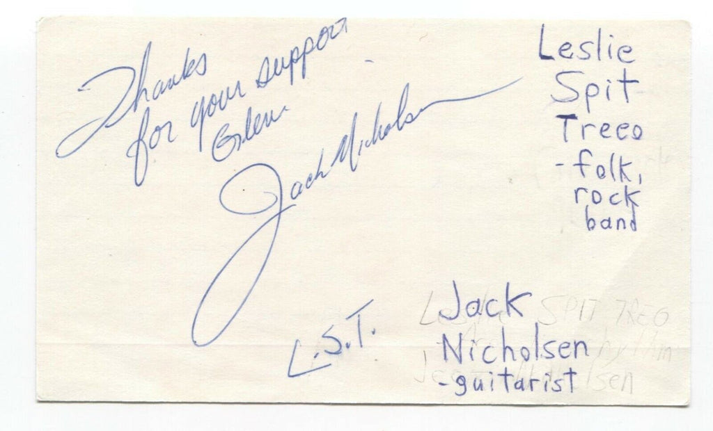 Leslie Spit Treeo - J.D. Nicholsen Signed 3x5 Index Card Autographed Signature