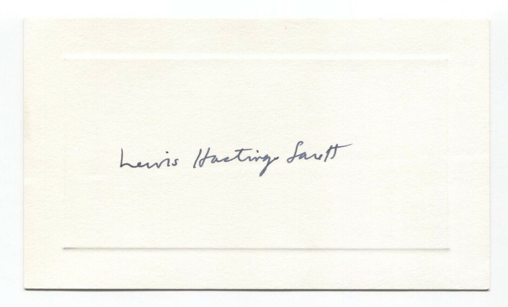 Up for sale is a signed approximately 5.5 x 3.5 inch thick paper card, boldly autographed by scientist Lewis Hastings Sarett. Autograph was part of the well known single owner, original "Roger Harris" collection of thousands of autographs, acquired over many decades of collecting.