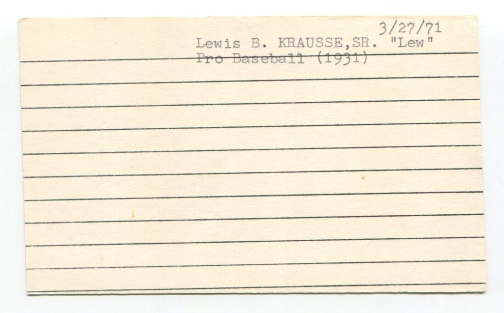 Lewis "Lew" Krausse Signed Index Card Autographed Baseball MLB