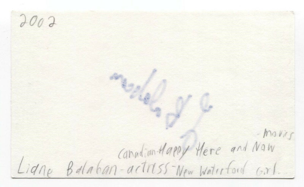 Up for sale is an autographed 3x5 index card, boldly signed by Liane Balaban. This autograph was part of an enormous collection of over 9000 in person collected signatures.