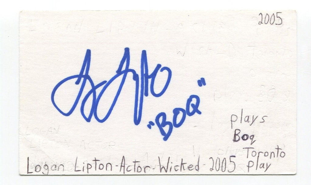 Logan Lipton Signed 3x5 Index Card Autograph Actor Wicked Medium