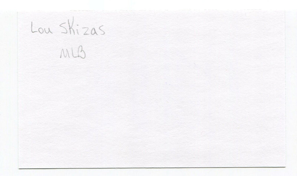 Up for sale is an autographed 3x5 index card, boldly signed by baseball player Lou Skizas. Just a great looking autograph that will display nicely. Autograph was part of a huge "MP" Collection, consisting of over 3,000 signed index cards that I was fortunate to purchase in it's entirety.