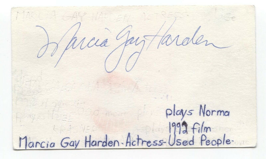 Up for sale is an autographed 3x5 index card, boldly signed by Marcia Gay Harden. Autograph was part of an enormous collection of over 9000 in person collected signatures.