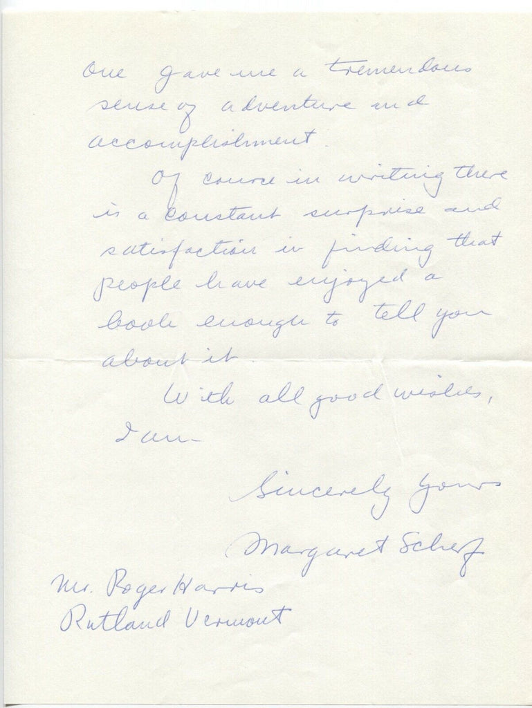 Margaret Scherf Signed Letter Autographed Signature Author Writer