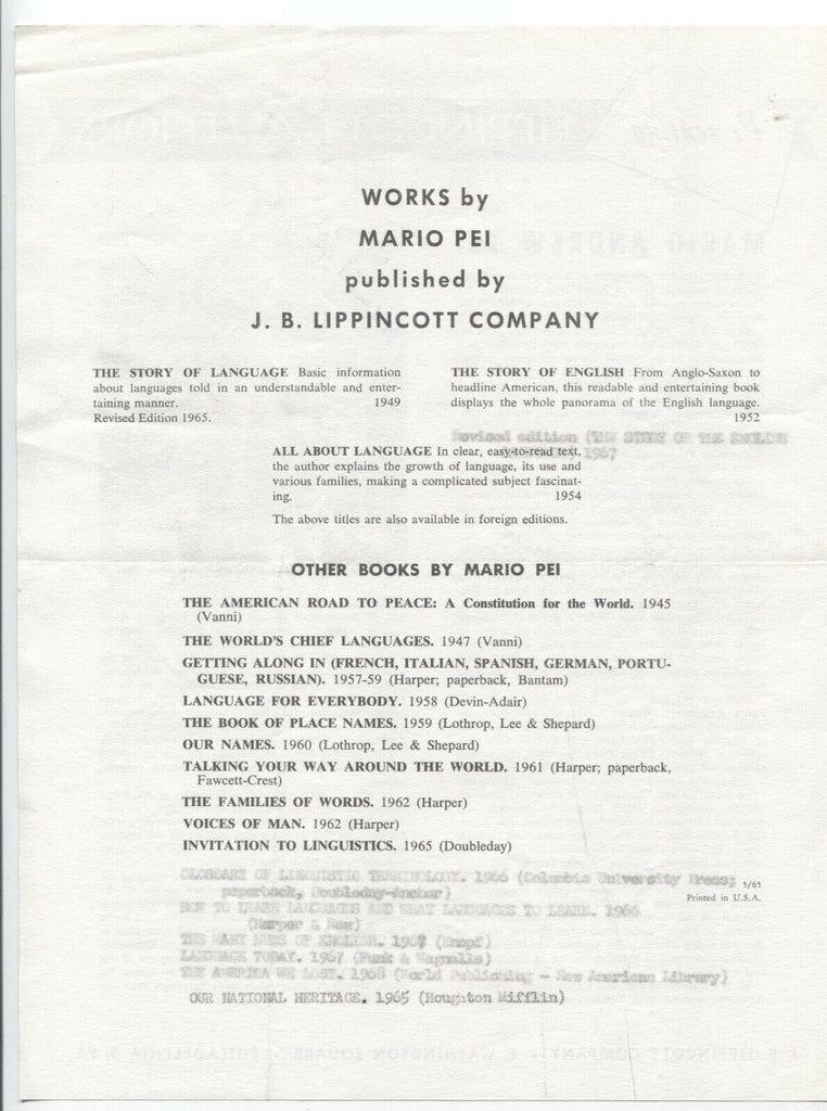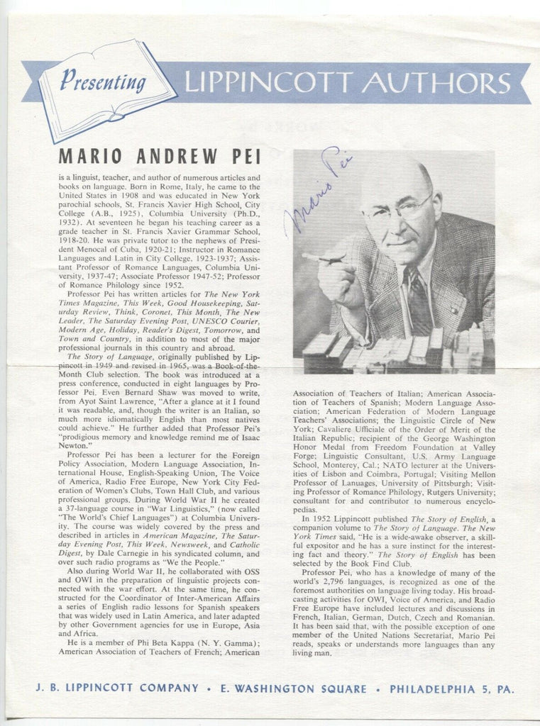 Mario Pei Signed Photo Page Autographed Signature Linguist Author Writer