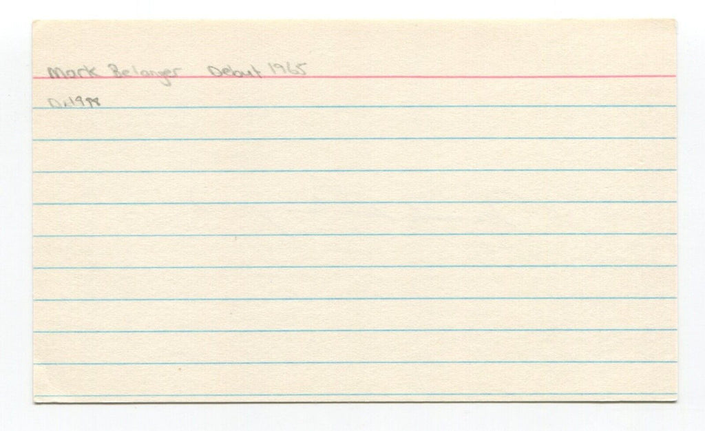 Up for sale is an autographed 3x5 index card, signed by baseball player Mark Belanger. Just a great looking autograph that will display nicely.   Autograph was part of the JP collection consisting of over 350 autographed index cards.