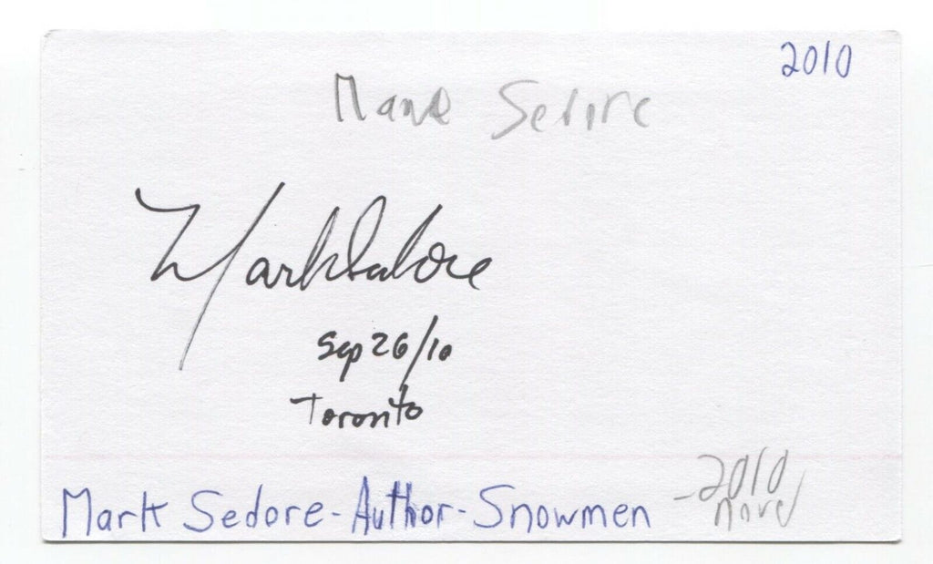 Mark Sedore Signed 3x5 Index Card Autographed Signature Author Writer Snowmen