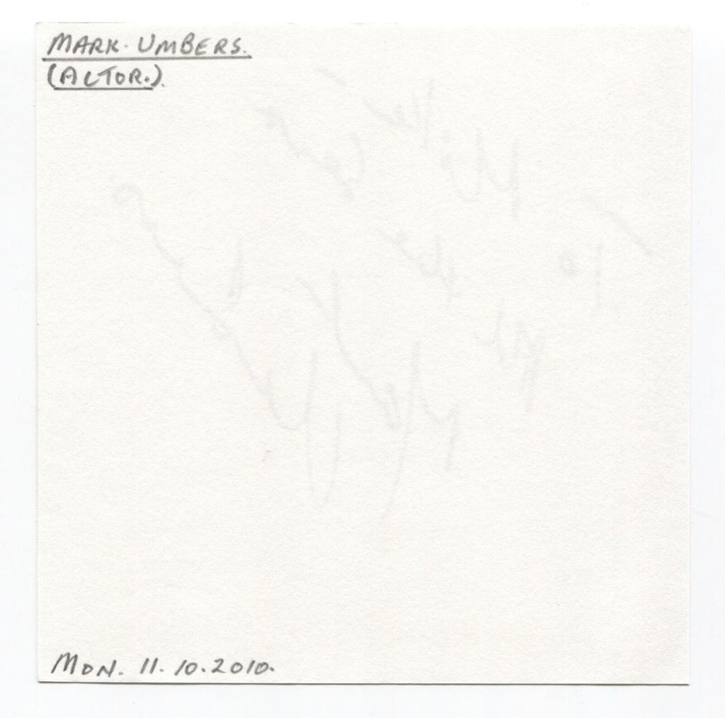 This thick white paper page features a bold and clear purple pen autograph of Mark Umbers. Originating from the "Michael Berry" autograph collection, the page itself measures approximately 5.5 x 5.5 inches in size.