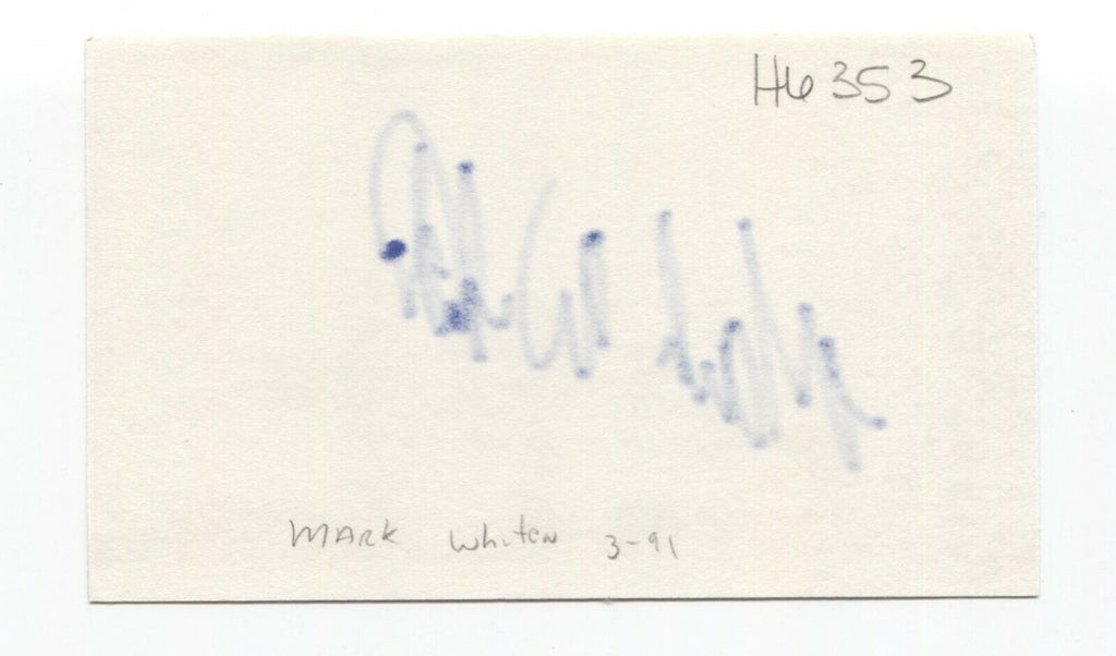 Up for sale is an autographed index card, boldly signed by Mark Whiten. Autograph was part of a large collection of cut autographs and index cards, over 200 baseball signatures that I was fortunate to purchase in it's entirety.