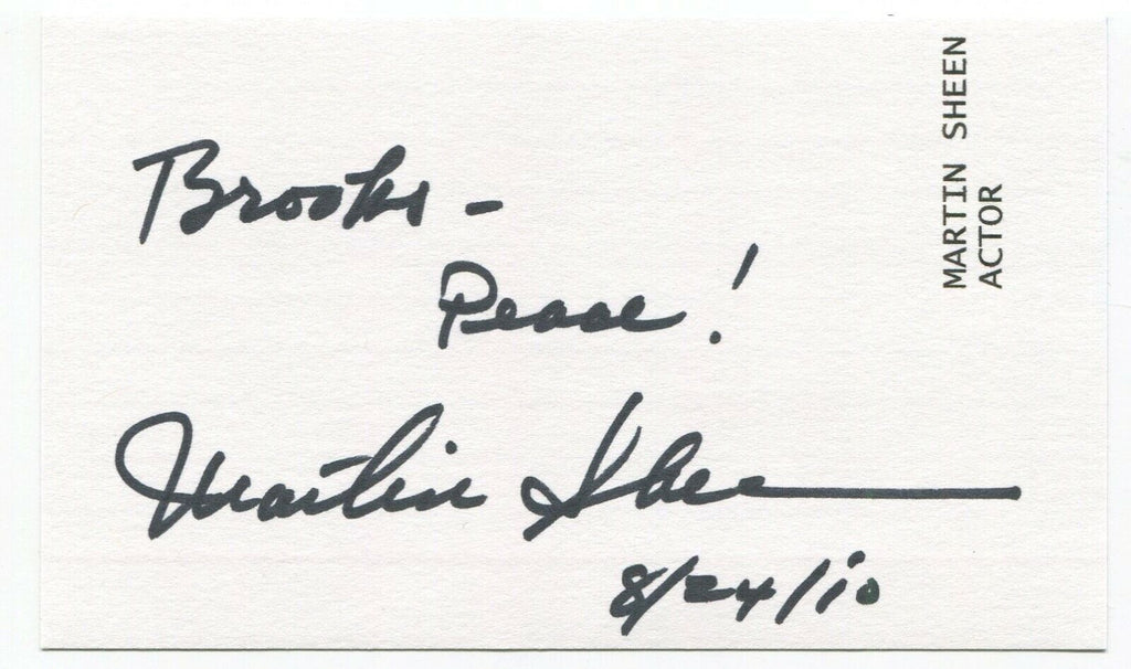 Up for sale is an autographed 3x5 index card, boldly signed by actor Martin Sheen.   Autograph was part of the large "Brooks Wyatt" collection of over 700 signatures that I was fortunate to purchase in it's entirety.