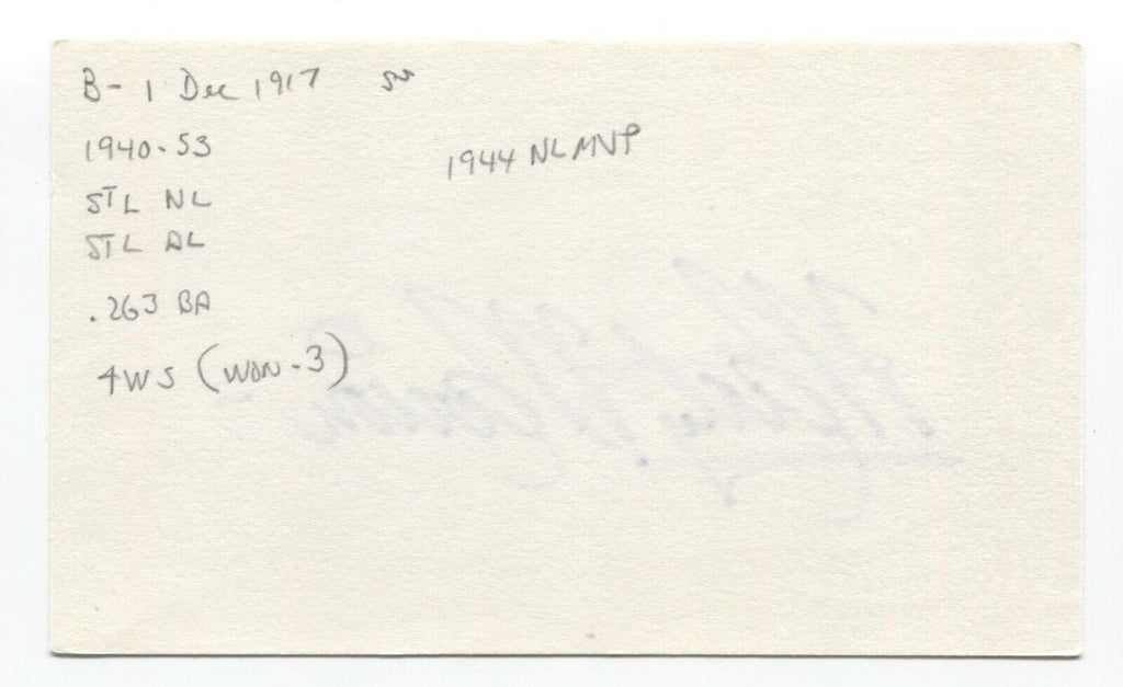 Marty Marion Signed 3x5 Index Card Autographed Baseball 1946 St Louis Cardinals
